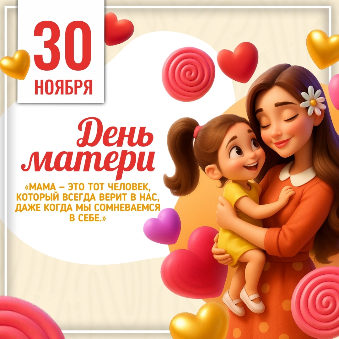Сегодня мы отмечаем замечательный праздник — День матери. Это особенный день, когда хочется выразить благодарность каждой маме за её тепло, заботу и любовь! Мы знаем, насколько важно ваше участие в воспитании детей, какое огромное значение имеет ваша поддержка и внимание. Благодаря вам наши ребята растут творческими, открытыми миру и уверенными в себе людьми ... Читать дальше »